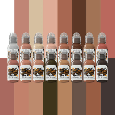 16 color set of pigments for areola restorative tattooing. Each bottle is 1 ounce. Brought to you by SamRTattoo, and World Famous.